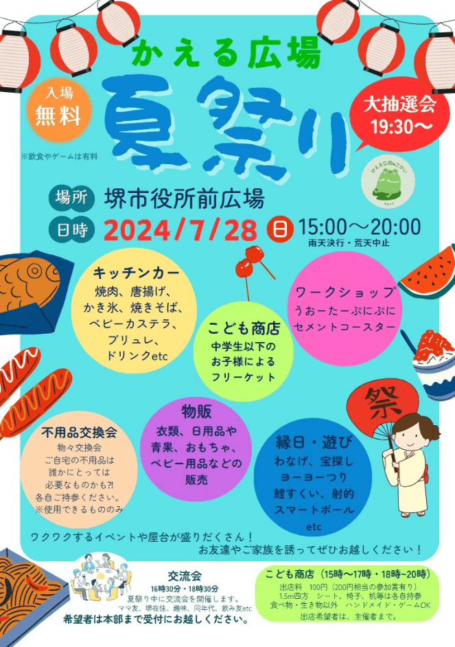 7月28日(日)、堺東駅近くの堺市役所前広場にて、『かえる広場 夏…