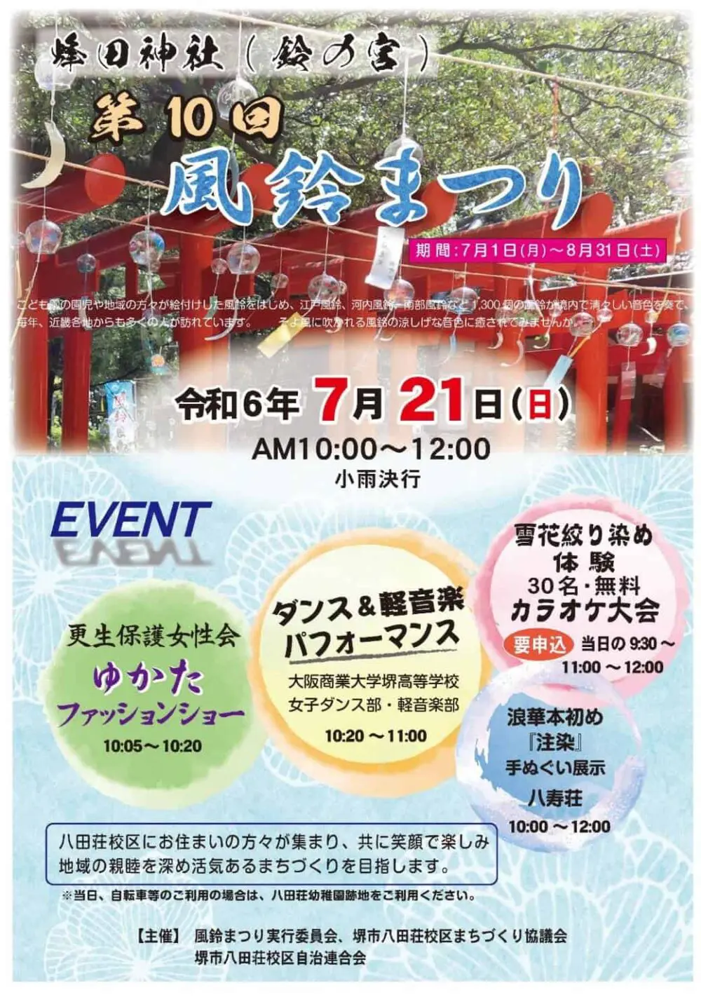 【堺市中区】7/21(日)に「蜂田神社(鈴の宮)」で『風鈴まつり』が開催(さかにゅー)