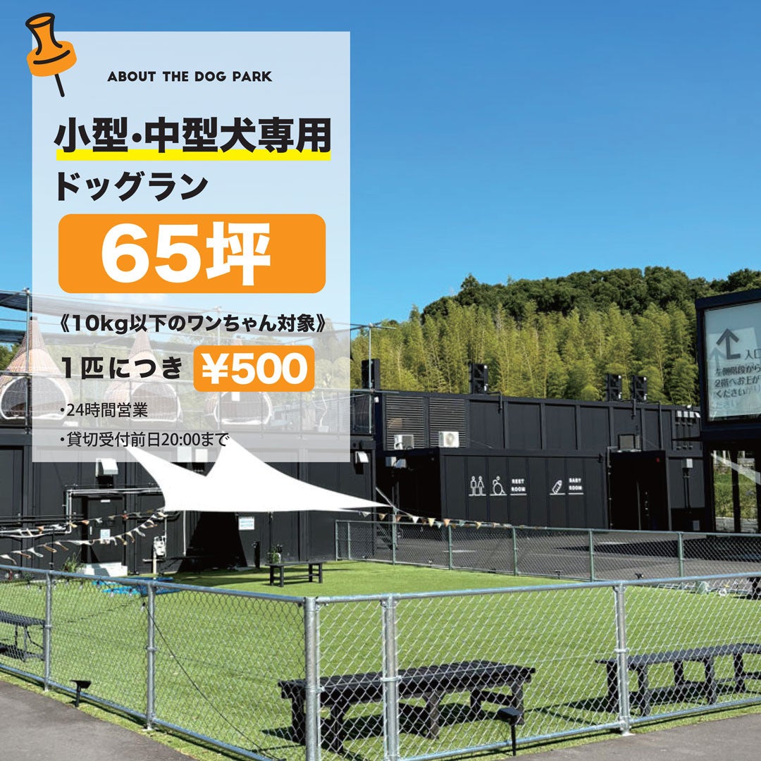 【小型・中型犬専用ドッグラン】もご用意しており、こちらは65坪の敷地で10kg以下のわんちゃんが安心して遊べます。大型犬とは別エリアで、安全に楽しいひとときをお過ごしいただけます。