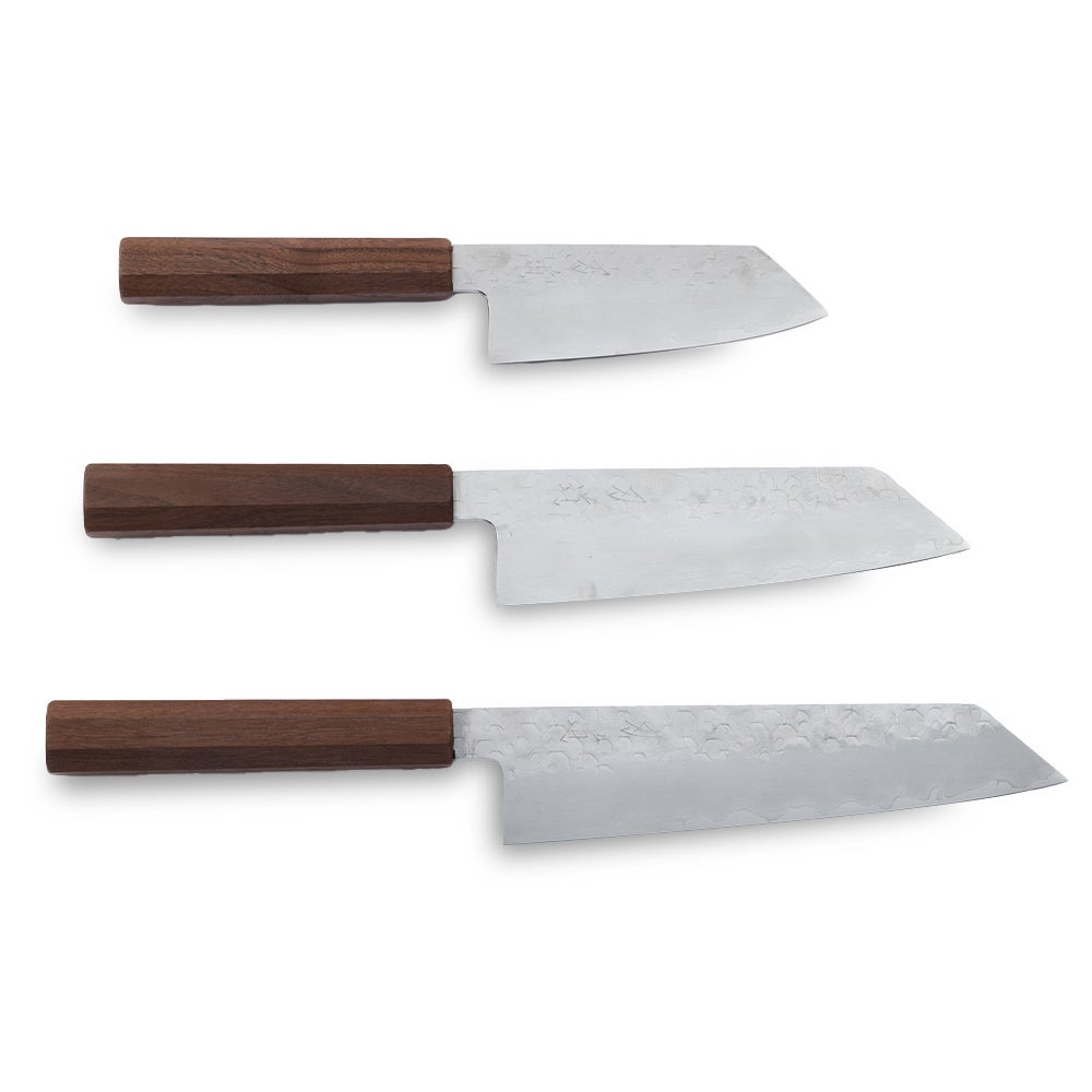 今回は、135mmの小文化、180mmの文化、210mmの切付牛刀の3種類をラインナップしています。小文化は、小さすぎも大きすぎもしない絶妙なサイズ感で、一人暮らしの方や、ささっと軽食を作りたい時に重宝しそう。文化は料理好きの方やファミリー層に、切付牛刀はプロの方にもおすすめです。