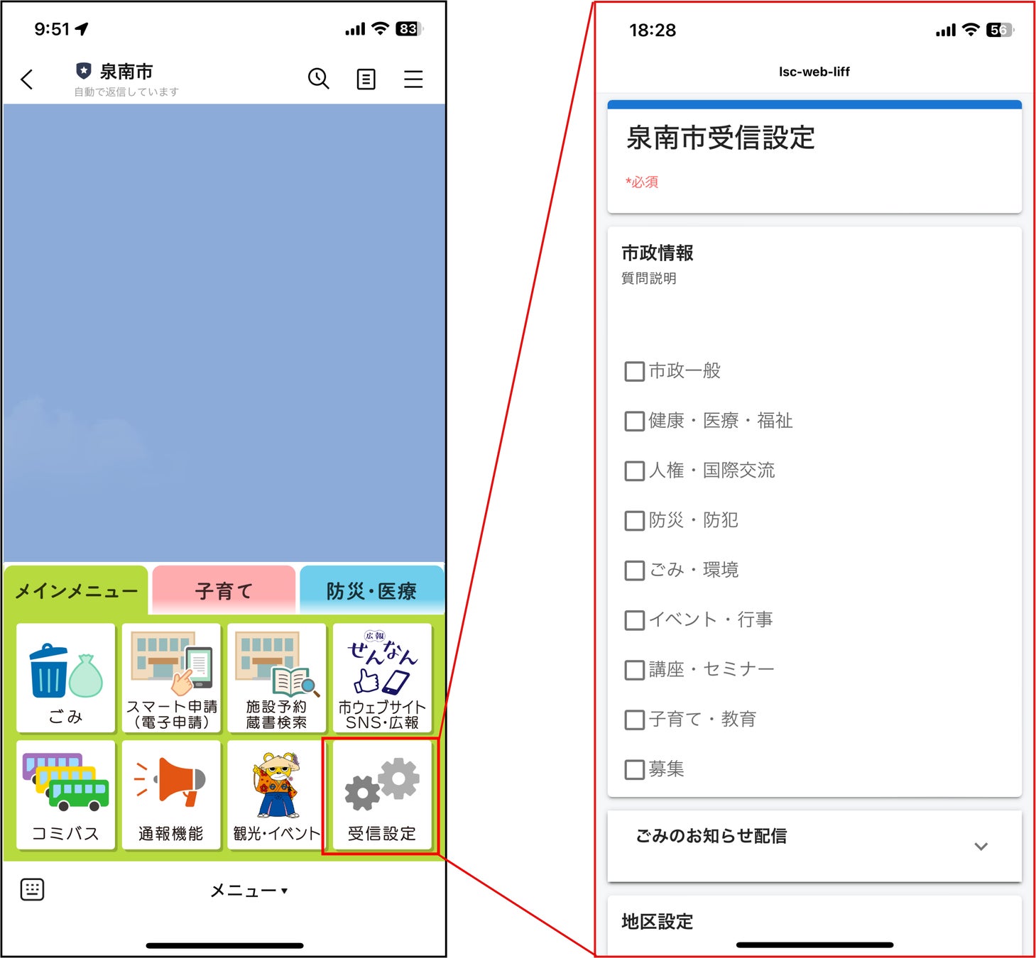 住民の希望に応じた配信だけを届ける「セグメント配信」機能を導入。欲しい配信カテゴリーを「受信設定」に回答することでカスタマイズすることができます。住民がほしい情報に絞って配信ができるため、市からの情報発信がこれまで以上に効果的になることが期待されます。
