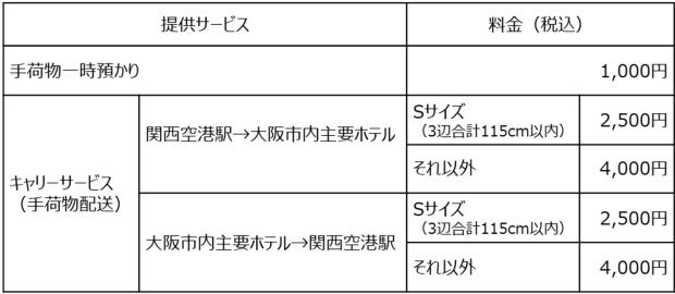 (関西空港→ホテル)申込締切14:00、ホテル受取り19:00以降