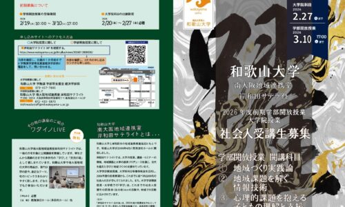 和歌山大学岸和田サテライトは、令和8(2026)年度前期の社会人向け受講生募集を2月中旬から開始します。南海浪切ホール近くで大学の授業を受けられる「まちの中の…