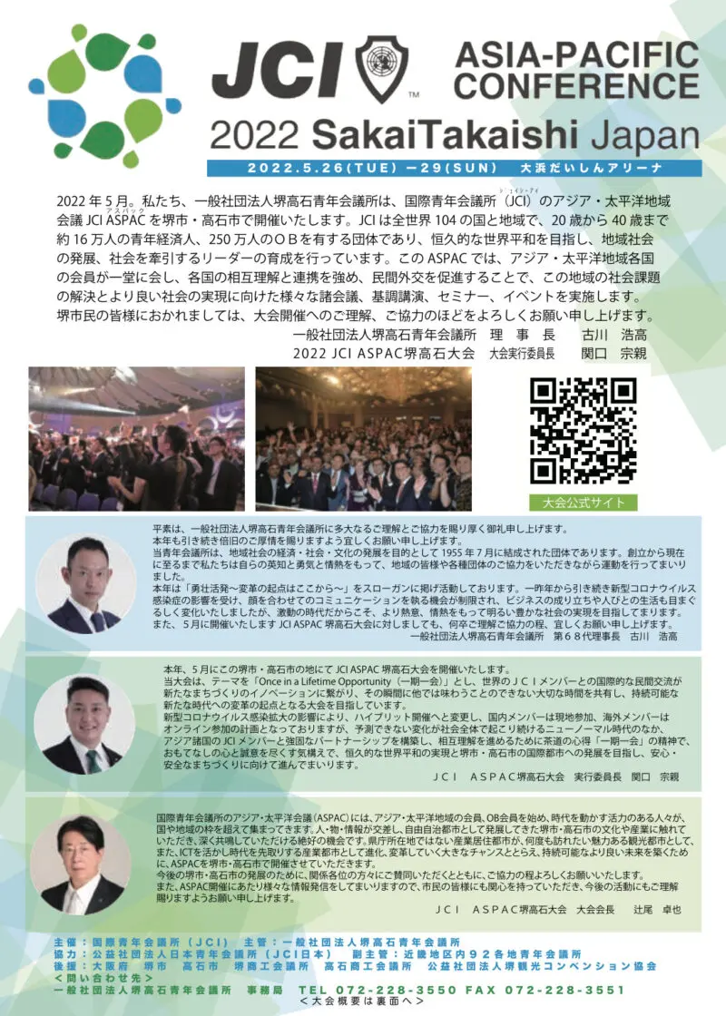 ※本記事のイベントは終了しました。アジア・太平洋地域最大規模の青年経済人国際会議(JCI ASPAC)が堺で開催されています。5/27・28…