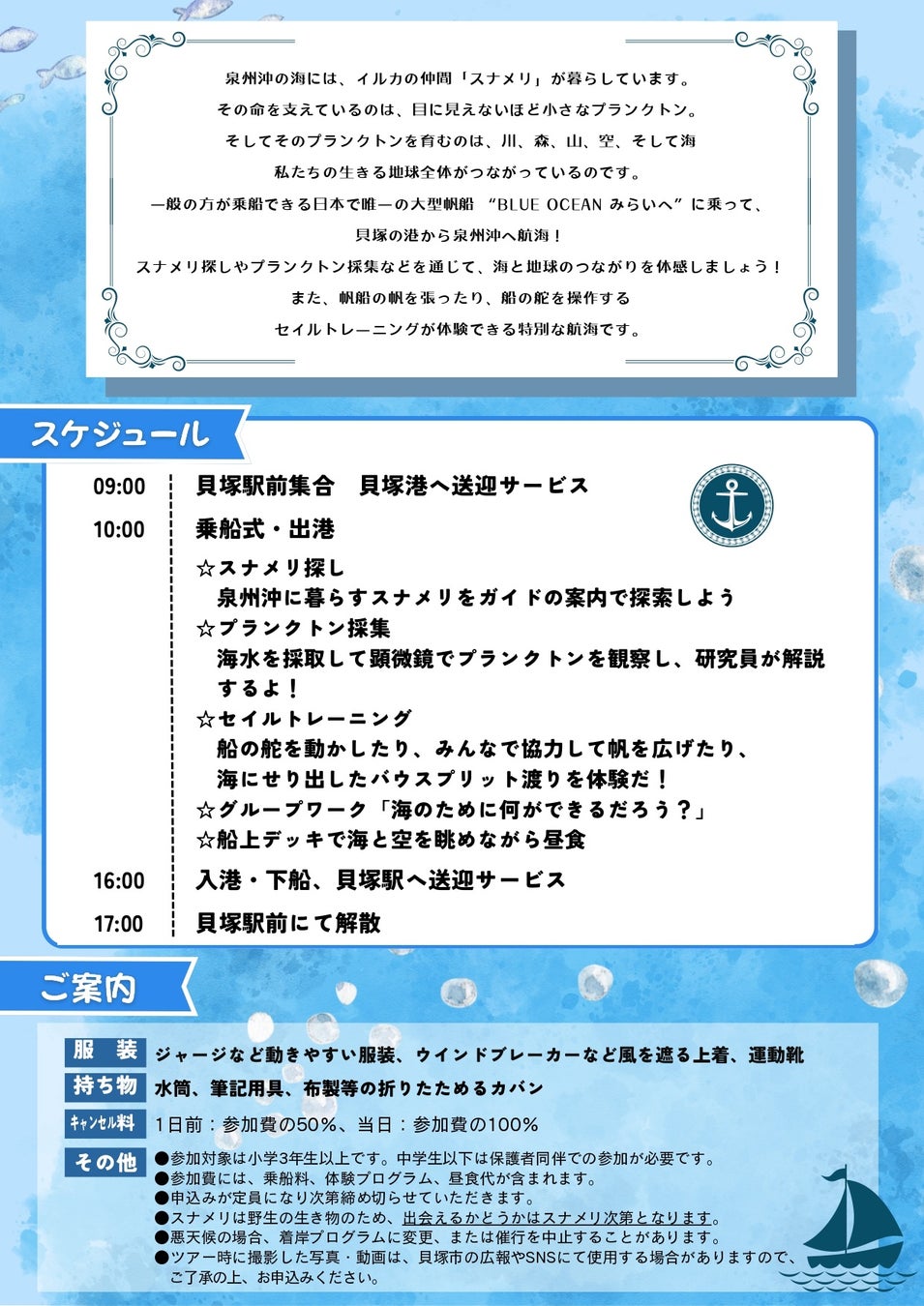 貝塚から「帆船BLUE OCEAN みらいへ」で生命のつながりを体験する航海へ!の3大ポイント