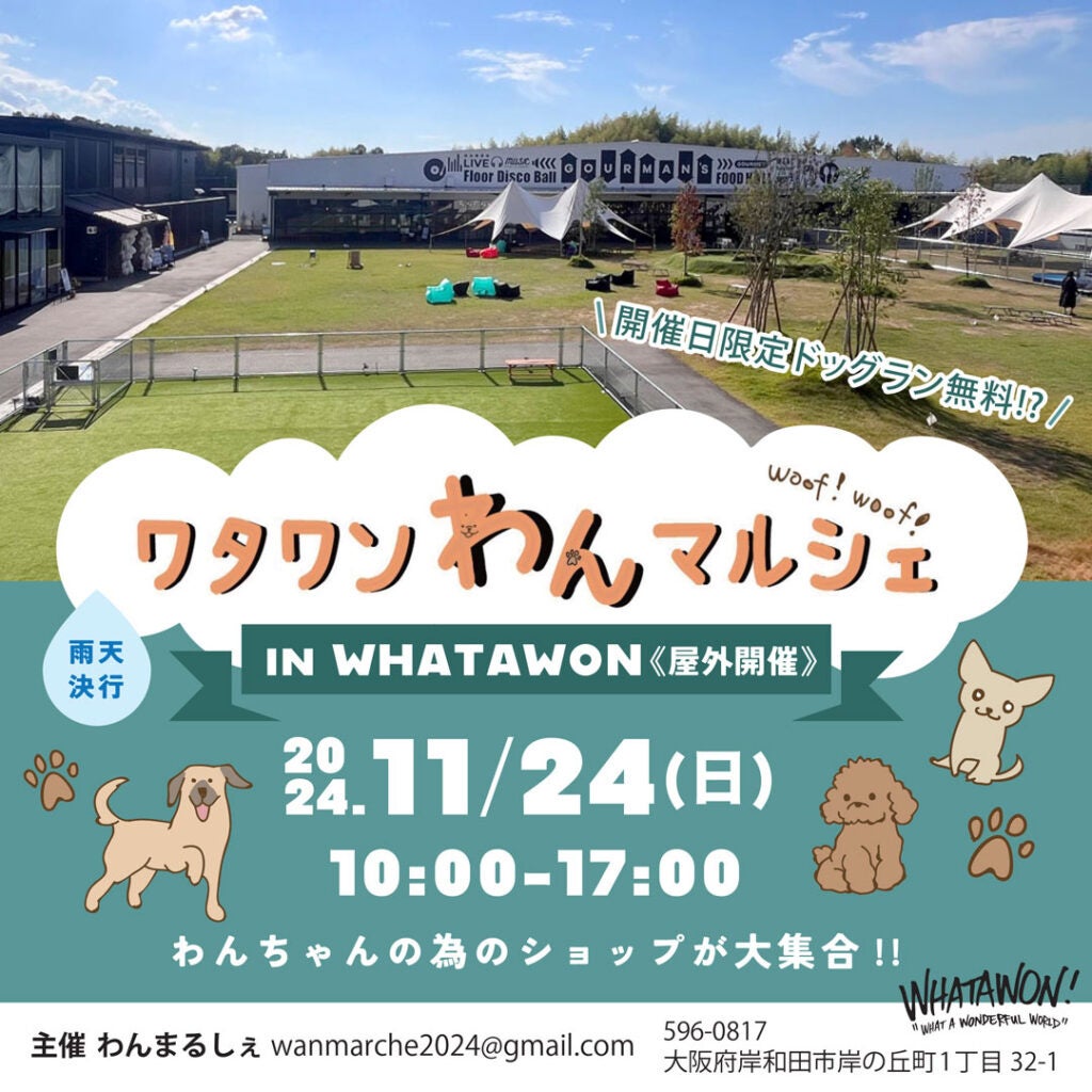 株式会社antiqua(本社:大阪府和泉市)が手がける滞在型エンターテインメントモール『WHATAWON(ワタワン)』で「わんちゃん運動会」が開催されます!このイベントでは、わんちゃんのためのゲーム大会や無料で観覧できるドッグショーが行われるほか、ペット用品を扱う物販ブースも設置されます。