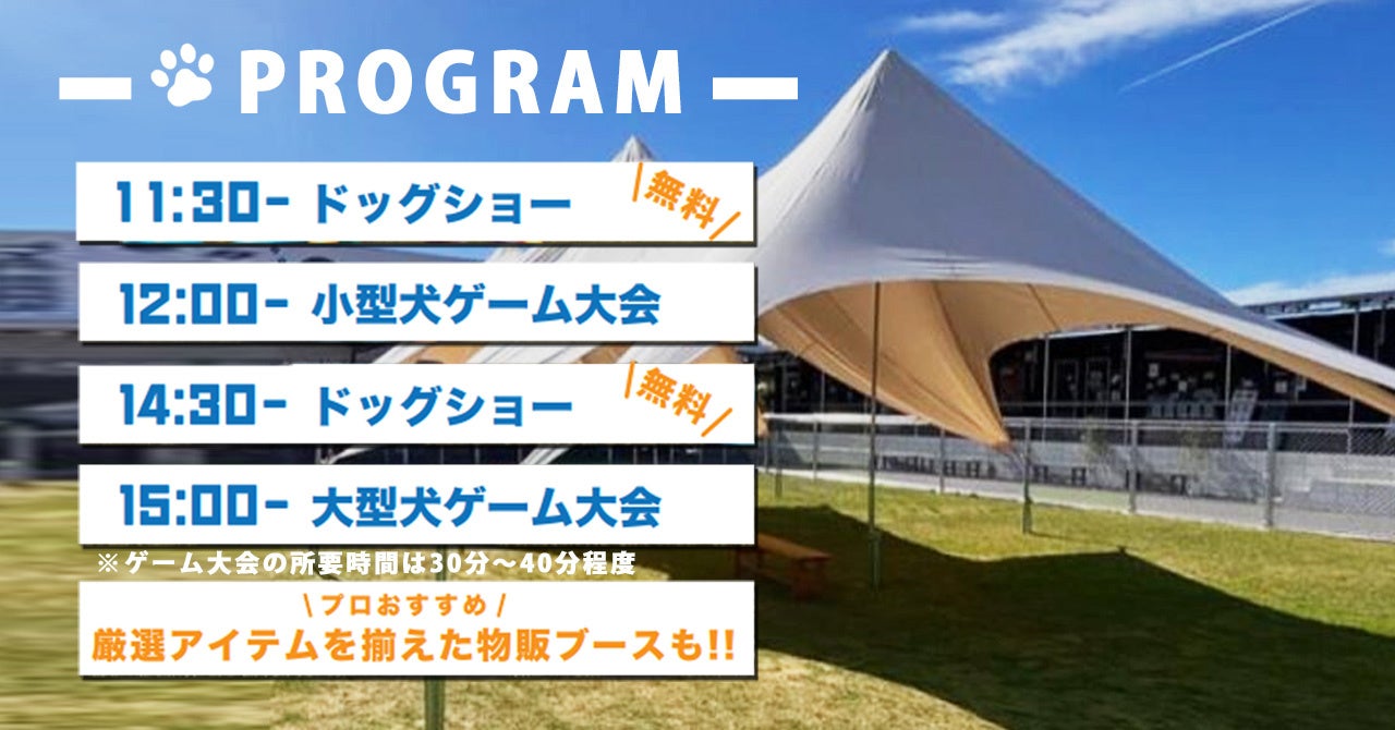ゲーム大会の参加可能頭数は、1回につき20~25組です。当日受付制となり、「グルマンズ軒下」にて受付を行います。参加費は1頭につき550円(税込)。お支払いは現地でのキャッシュレス決済のみとなります。なお、ドッグショーは観覧無料のためどなたでもお気軽にお楽しみいただけます。