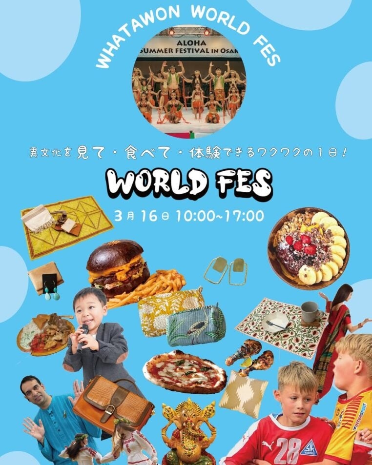 2025年3月16日(日)大阪・岸和田のWHATAWONで、世界の文化を体験できる『WHATAWON WORLD FES 2025(ワタワンワールドフェス)』を開催します。フラダンスやカントリーダンスなどのパフォーマンス、ファッションショー、ハンドボールショーなど、多彩なプログラムを予定。各国の料理も楽しめます。「見て・食べて・体験する」特別な1日を、ぜひご家族やご友人とお楽しみください。