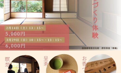 堺市堺区の大仙公園内にある、国の登録有形文化財・堺市茶室「伸庵」で、瞑想とお香づくりを体験できる特別プログラムが実施される。開催期間は2026年2月14日(土…