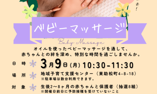 【泉大津市】3月9日にベビーマッサージ講座を開催 地域子育て支援センター