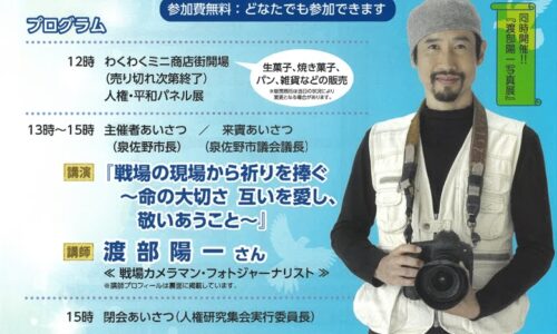 【泉佐野市】人権研究集会を3月1日開催 渡部陽一さんが講演