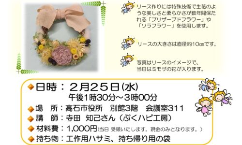 【高石市】ミモザのリース作りで国際女性デーを祝う 2月25日に男女共同参画講座
