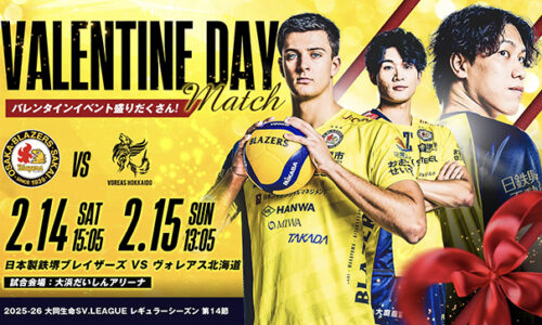 日本製鉄堺ブレイザーズは、2月14日(土)・15日(日)に大浜だいしんアリーナで開催されるSVリーグ男子・ヴォレアス北海道戦にあわせ、バレンタイン企画を実施す…
