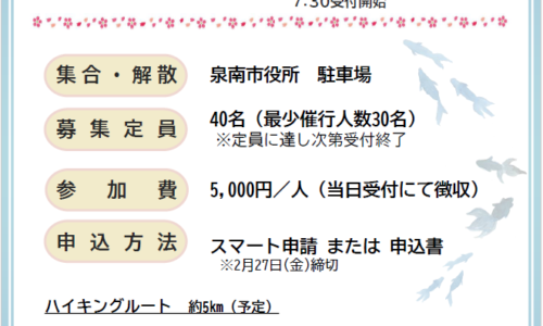 【泉南市】豊臣秀長ゆかりの郡山城跡へ 大河ドラマの舞台を歩く春のハイキング 3月28日開催