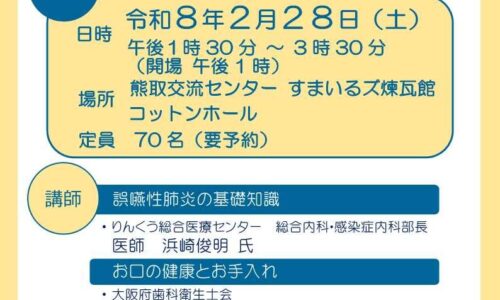 【熊取町】誤嚥を防いで肺炎予防へ 医師らが基礎知識と対策を解説 2月28日開催