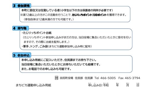 田尻町は、住民参加型の清掃活動 「第17回まちピカ運動」 を、3月22日(日)に実施する。「ごみのないまち 環境美化の精神があふれたまち たじり」の実現を目指…