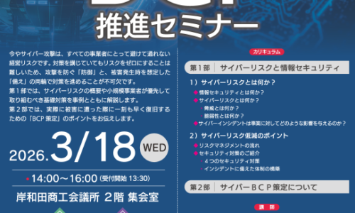 岸和田商工会議所は、サイバー攻撃への対応力強化を目的とした「サイバー対応BCP推進セミナー」を、2026年3月18日に開催する。サイバーリスクを経営課題として…