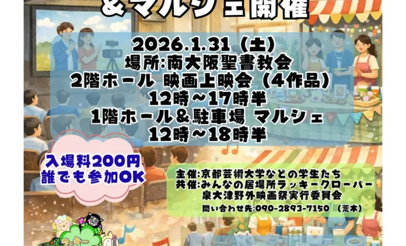 京都芸術大学などの学生が主体となり、泉大津市で地域の居場所づくりを行う「みんなの居場所 ラッキークローバー」と共催で、2026年1月31日(土)12時〜17時…