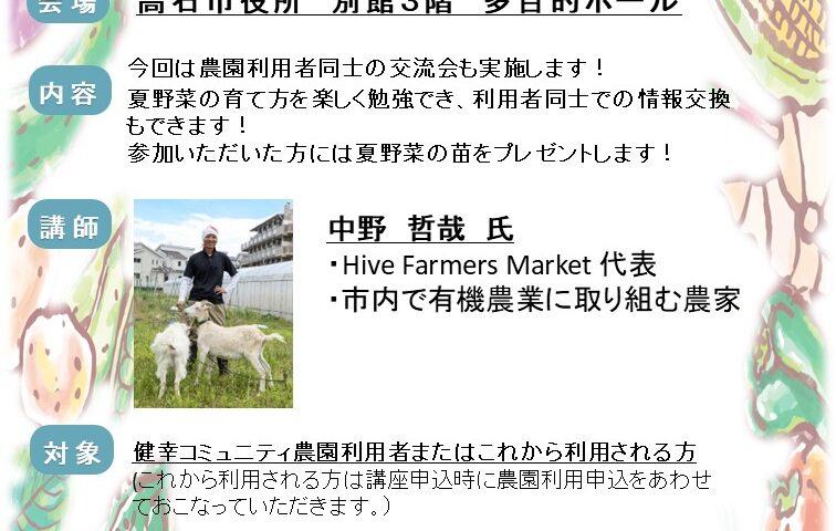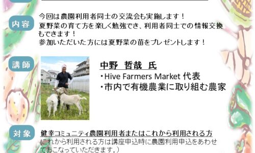 【高石市】3/29「健幸コミュニティ農園講座」夏野菜の育て方&交流会開催