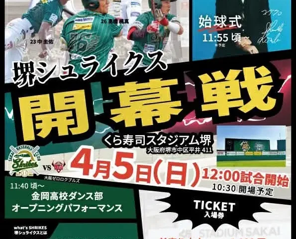 堺市を拠点に活動し、2025年度もリーグ優勝を果たしたプロ野球独立リーグチーム「堺シュライクス」。2026年シーズンの幕開けを飾る4月5日(日)の開幕戦に、強力なスペシャルゲストの参戦が決定しました!堺東にある『九月八日』のオーナーであり、堺親善大使も務めるコブクロの黒田俊介さんが始球式に登壇します。記事本文■ 堺を代表するアーティストとプロ野球チームの共演 …