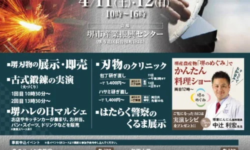 堺刃物まつり実行委員会は、堺の伝統産業である「堺刃物」の魅力を発信する一大イベント「堺刃物まつり」を、4月11日(土)と12日(日)の2日間、堺市産業振興セン…