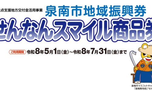 【泉南市】全世帯に2万円分の地域振興券「せんなんスマイル商品券」を配布 5月から利用開始