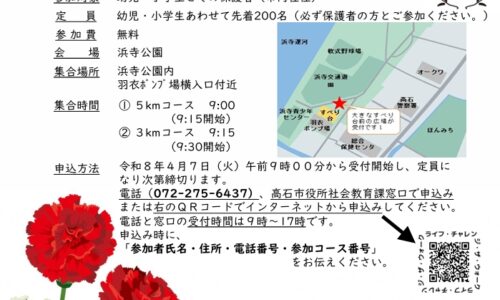 高石市では、2026年5月10日(日)の母の日に合わせ、浜寺公園を舞台にしたウォーキングイベント「ライフ・チャレンジ・ザ・ウォーク 2026 in 高石」を開…