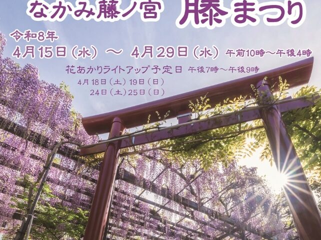 大阪府泉佐野市中庄に鎮座する奈加美神社にて、2026年4月15日(水)から4月29日(水・祝)までの期間、「藤まつり」が開催されます。開催時間は各日1…