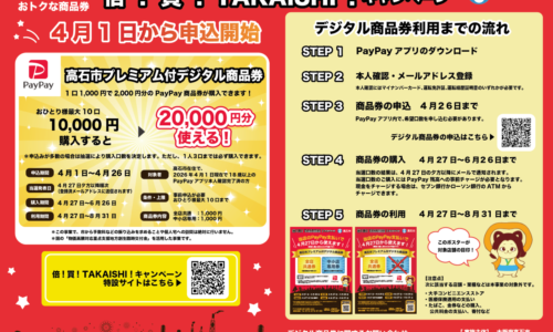 高石市は、PayPayと連携したプレミアム付きデジタル商品券事業「倍!買!TAKAISHI!キャンペーン」を2026年4月から実施します。市内在住者を対象に、…